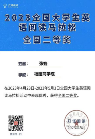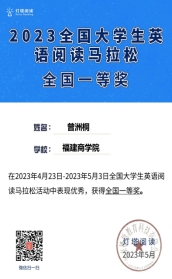 在为期10天(4月23日8点—5月3日8点)的2023全国大学生英语阅读马拉松活动中,买球官网学生积极参与,认真阅读答题,取得非常优异的成绩。其中,2020级商务英语专业曾洲桐同学获全国一等奖且排名第一,同样来自2020级商务英语专业的张婕和张雅龙同学获全国二等奖,来自2022级商务英语专业的程俊炜同学获全国三等奖。