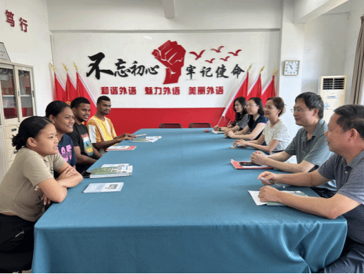 2023年9月18日,买球官方网站在学院会议室召开留学生师生见面交流会。买球官网池玫院长,林盛书记,范云霞副院长,饶卫忠副院长与留学生任课老师丁彧藻,周文蕴参加了交流会。