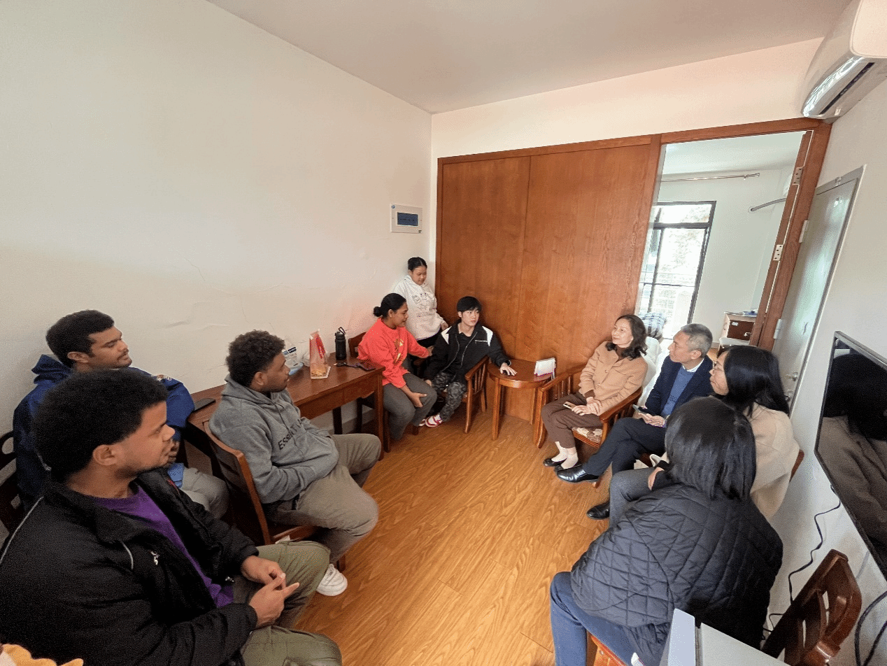 新学期伊始,为深入了解留学生学习、生活情况,做好留学生教学生活管理保障工作,3月5日,学院党委书记林晓羽、院长池玫、副院长范云霞等深入宿舍与留学生们亲切交流。