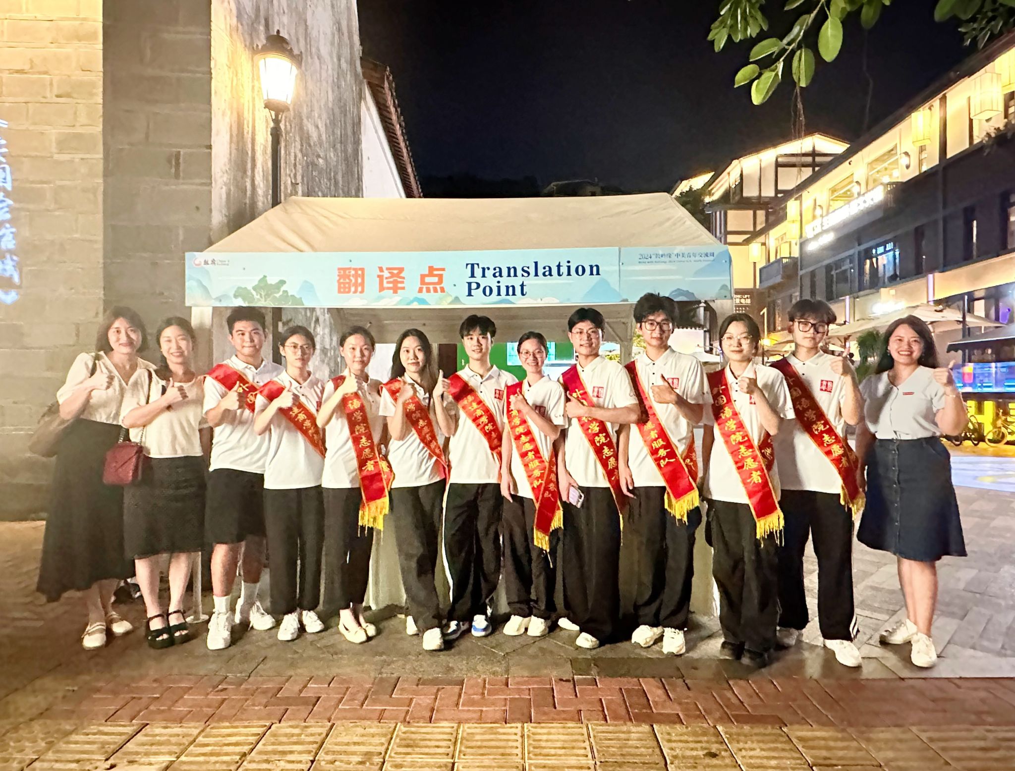 在买球官方网站院长池玫教授的悉心指导和领导们的关心支持下,团队由柯佳音、官文娟、刘姗姗三位老师带领英语系10位学生,以高度的责任感和扎实的专业素养,为活动提供了全方位、高质量的服务。薛韪禾、江盈盈、熊建闽等老师也参与了前期的重要准备工作。