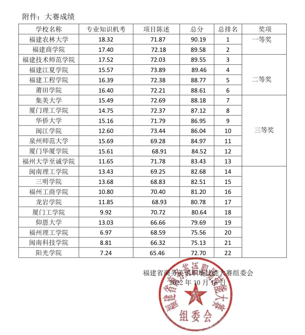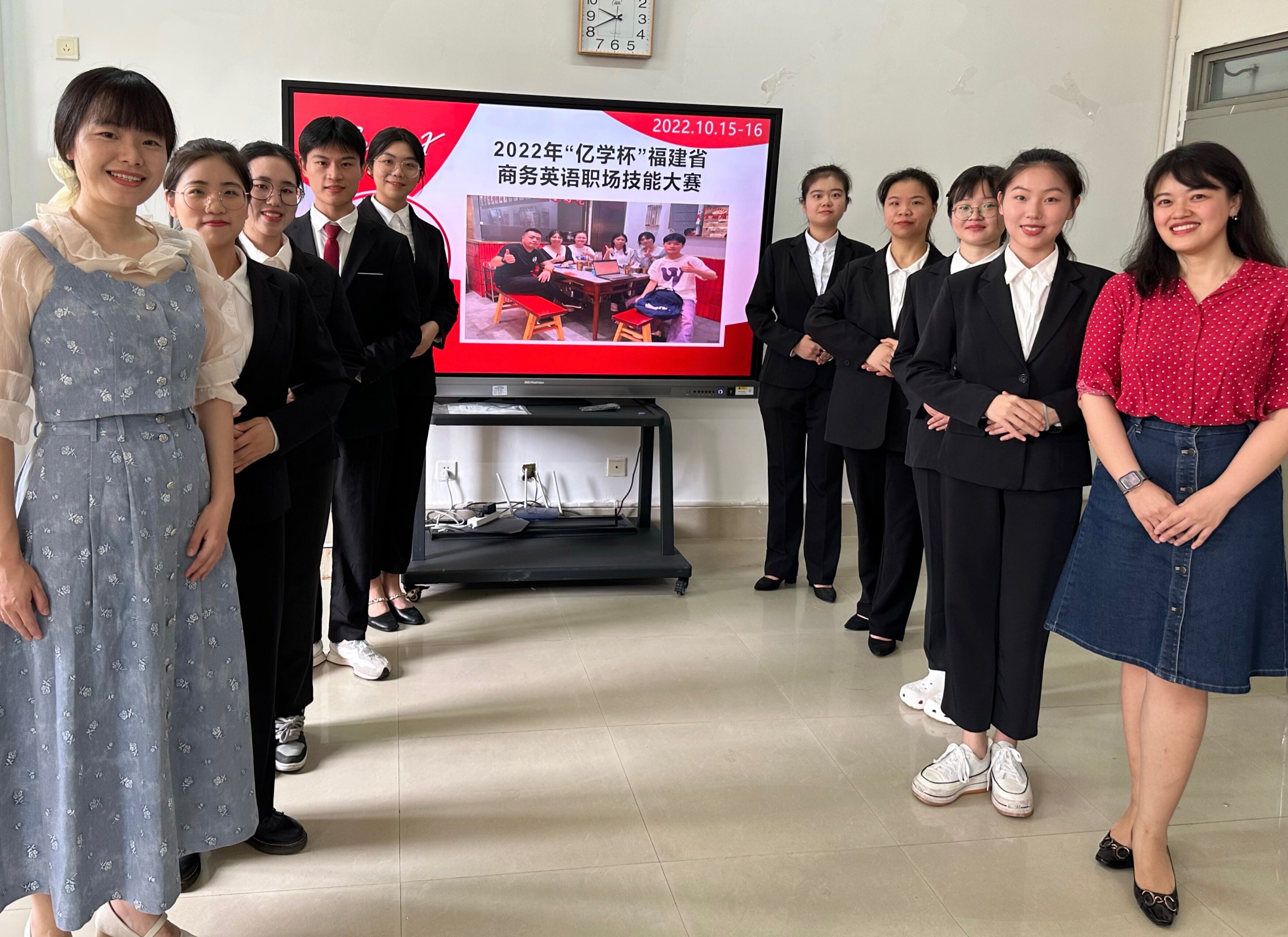 由福建省教育厅主办的2022年“亿学杯”福建省商务英语职场技能大赛于2022年10月16日落幕。经过专业知识机考、项目英文陈述、在线问答三个环节的激烈比拼,买球官网买球官方网站商务英语专业饶丽、姚家煌、郑梦婷、曾洲桐、张静茹、李嘉莉、肖莹、陈宇璐八位同学所组成的Spark X参赛代表队(指导老师:江盈盈、柯佳音)从全省22支参赛队伍中脱颖而出,荣获一等奖,是买球官网在该赛事中取得的最好成绩。