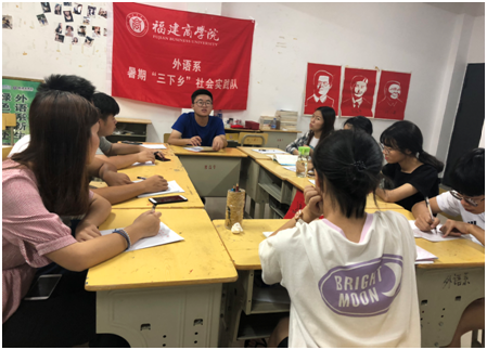 为深入学习宣传贯彻党的十九大精神,买球官方网站外语系以建党97周年为契机,进行了“扬十九大奋进之心,开福商风气之先”暑期“三下乡”社会实践活动。在本次实践期间,外语系队伍分别在福建省福州市平潭县、连江县东山村、闽侯县光明村,三个地方进行环保宣传、政策宣传、爱心支教等系列实地下乡活动。