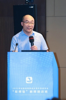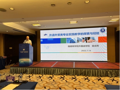 7月12-16日,2022年全国高校外语外贸类专业“双师型”教师培训班在厦门举行,买球官网买球官方网站童成寿老师受中语智汇科技(厦门)有限公司的邀请,在培训班上作题为“外语外贸类专业实践教学的探索与经验”的主旨发言。