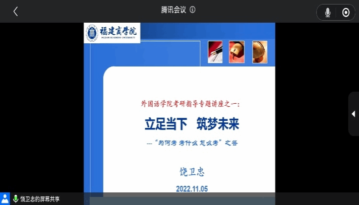 为帮助同学们做好考研规划,明确考研目标,2022年11月5日,买球官方网站于聚贤楼411会议室开展以“立足当下,筑梦未来”为主题的考研指导专题讲座。本次讲座采用线上与线下相结合的方式,学院副院长饶卫忠老师担任主讲人。