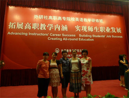 2010年7月,外语系董凤娇、李蓉、黄莹、何幸君、黄玮五位老师参加了由外语教学与研究出版社在杭州举办的以“拓展高职教学内涵,实现师生职业发展”为主题的高职高专英语教学研修班。该研修班旨在提高教学质量,探索职业英语教学的有效模式,进一步推动高职高专英语教学改革。