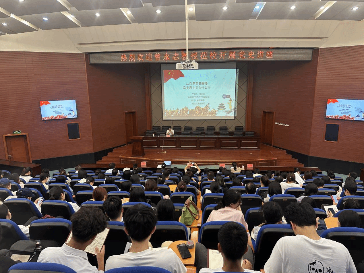 10月22日下午,买球官方网站与工商管理学院、国际经贸学院、金融学院联合举办庆祝中华人民共和国成立75周年党史学习专题会。专题会邀请中共福建省委党史研究和地方志编纂办公室党史研究一处二级调研员、厦门大学哲学博士、福建党史宣讲师曾永志作《从百年党史感悟马克思主义为什么行》专题讲座。校区四个学院班子成员及师生党员参加本次学习会。