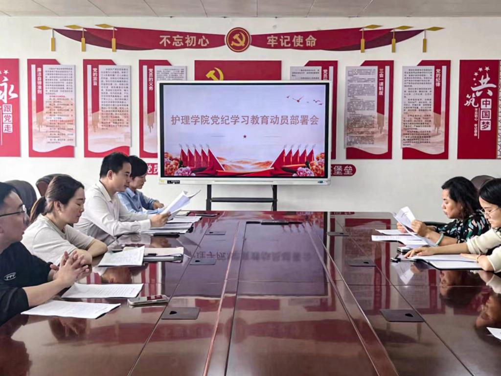 为深入学习贯彻习近平总书记关于党纪学习教育的重要讲话和重要指示批示精神,传达学习中央党的建设工作领导小组会议及省委、省卫生健康委党组有关会议精神,学习校党委副书记、校长李秋根在全校党纪学习教育动员部署大会上的讲话精神等,4月24日,beat365在线唯一官网召开党纪学习教育动员部署会议,研究部署学院党纪学习教育工作。护理学院党委副书记陈敏主持会议。