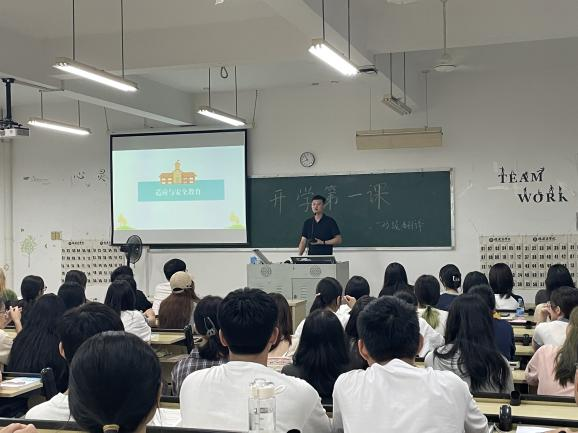 图1-1辅导员余屹凌老师为2023级翻译专业开展“安全教育”主题班会