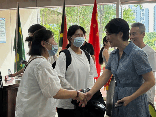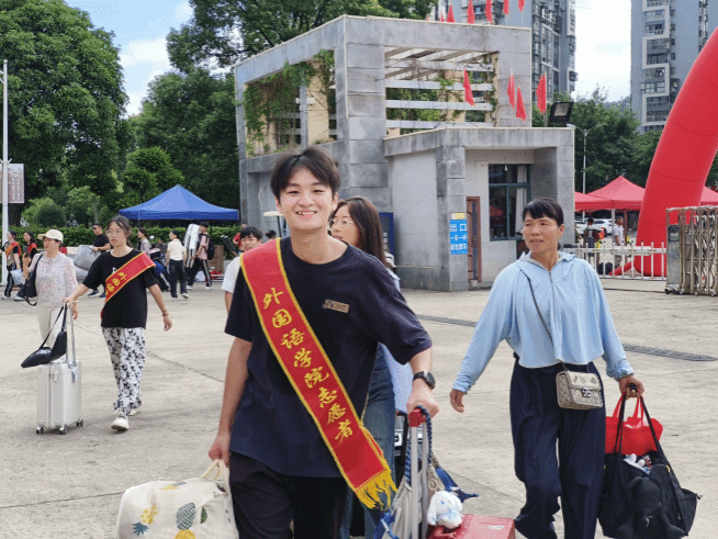 校党委书记吴访益、校长程灵、纪委书记林宇峰莅临现场,亲切问候迎新现场的师生,并对前来报到的家长和新生表达了诚挚的欢迎。身披红色绶带和马甲的志愿者们分布在各个迎新站点,他们顶着烈日帮助新生搬运行李、提供校园导览、介绍校园布局,井然有序地带领新生前往外语体验中心办理入学手续,以饱满的热情迎接五湖四海的外语人,以实际行动诠释“以心换新”的迎新理念。