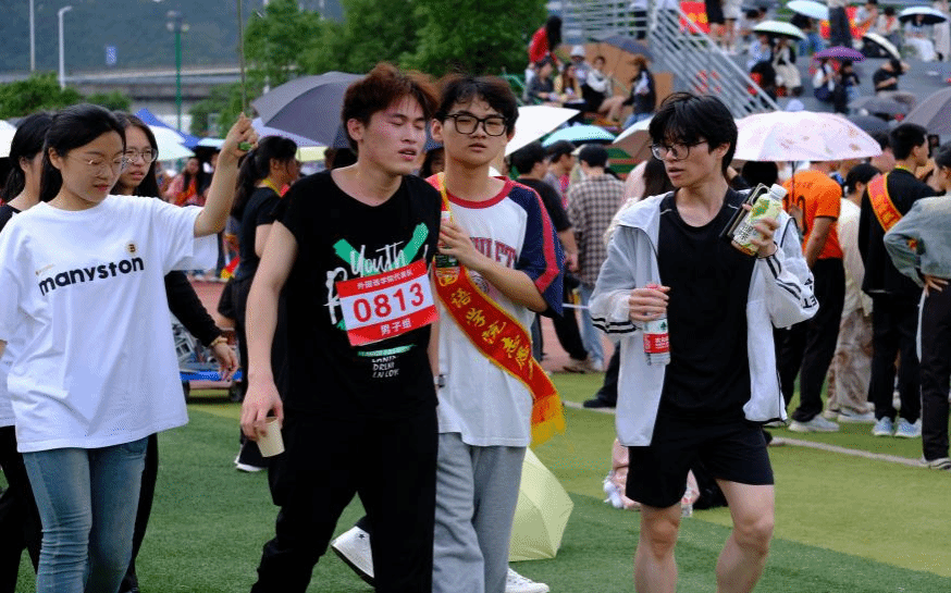 赛场上,横看四周,短跑、长跑、跳高、跳远、铅球等田径项目轮番上演,学子们在运动场上锐不可当,或一骑绝尘,或全力以赴,他们用青春挥洒着汗水,以饱满的热情、昂扬的斗志、勇于拼搏的信念、团结向上的精神展现着新一代外院学子的青春风采。同学们奋力拼搏,取得了团体学生组男子引体向上第一名、学生组男子4*100米接力第三名、学生组女子4*100米接力第五名等好成绩。来自24商务英语(专升本)2班的陈芝芝更是相继打破学生组女子1500米、3000米校记录,摘取金牌。他们以汗水为墨,激情为笔,以速度与力量诠释教育强国、体育强国的精神内涵。同时,场外的裁判们掐表计时、丈尺量寸,志愿者们身披绶带、帮扶同学,他们不辞辛苦、热情服务,为赛会成功举办贡献坚实力量。