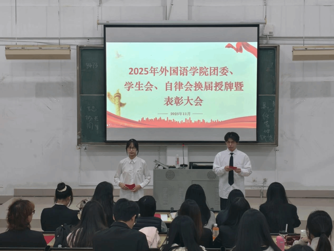 11月27日,买球官网团委、学生会、自律会开展2025-2026学年换届授牌仪式暨表彰大会。