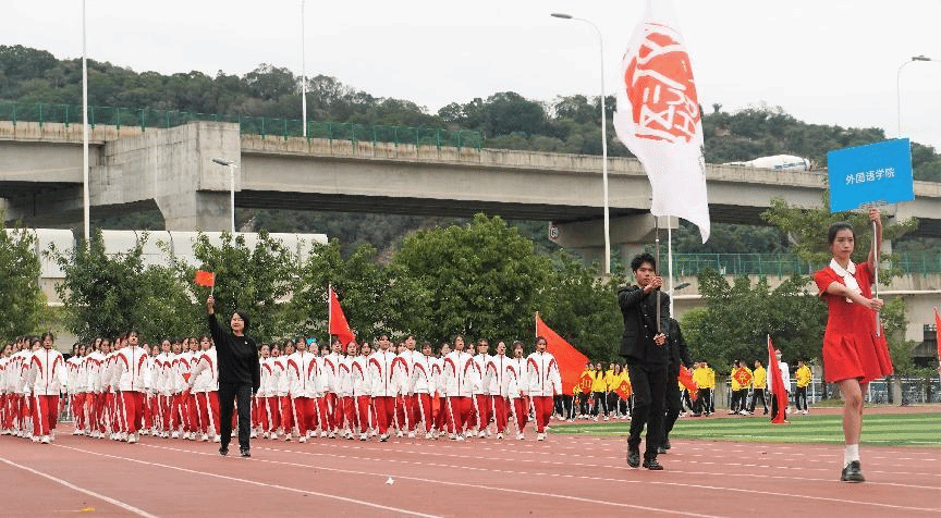 2022年12月1日买球官方网站于马尾校区田径场参加第七届校运会开幕式。买球官方网站师生代表队参与本次活动。