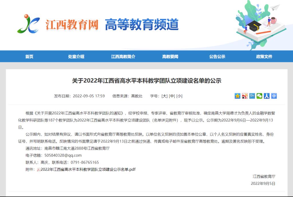 图1 2022年江西省高水平本科教学团队立项建设公示名单