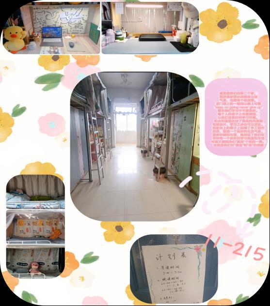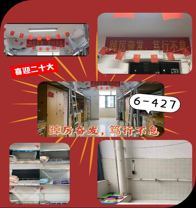 大赛共分为初赛、复赛两个环节,主要从宿舍内务卫生情况及特色设计、主题思想方面进行评比。同学们为参加此次大赛均做了充分准备,大家积极利用自己得空闲时间开动脑力,努力使自己的小窝变得温馨而又舒适,各个寝室虽风格不一,但都干净整洁、主题鲜明、内涵丰富。如6-109宿舍宣扬环保思想与概念,大家用废弃物品制作桌面摆件、手工制作墙面装饰,宿舍既美观又大方还充满环保气息。6-427宿舍紧扣活动主题,用国旗及横幅营造昂扬向上的宿舍氛围,表达了大学们爱党爱国爱生活的青春思想与情怀。