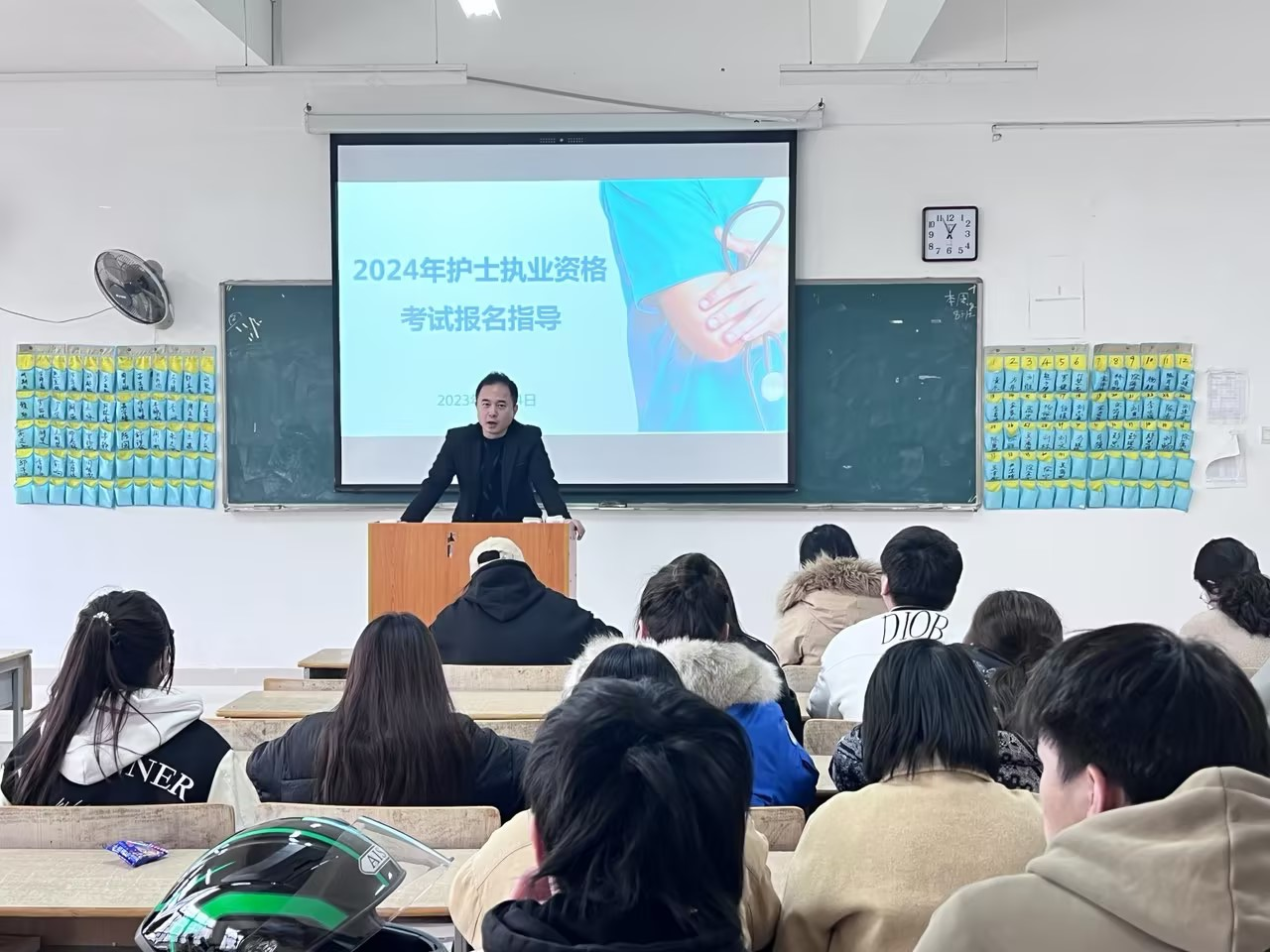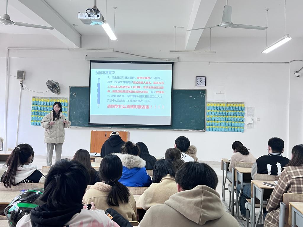 2024年全国护士执业资格考试报名工作将于2023年12月7日开始,根据江西省卫生健康委、江西省人力资源和社会保障厅《关于做好2024年度护士执业资格考试工作的通知》(赣卫人字〔2023〕36号)文件要求,为确保我院学生考试报名工作顺利进行,beat365在线唯一官网在2023年12月6日中午12:50组织2021级高职护理班级、2022级中高职对接班级所有辅导员和各班班委代表参加了2024年护士执业资格考试报名指导培训。