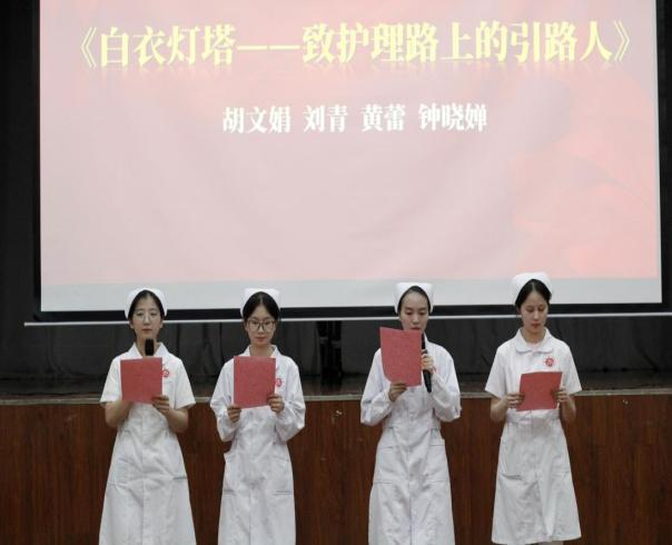 在充满温情的文艺汇演环节,师生彼此祝福、互道珍重。学生们以《白衣灯塔——致护理路上的引路人》的诗朗诵讴歌了师者仁心,展现了护理教育工作者传道授业的崇高精神。老师们以《莫名我就喜欢你》《一路顺风》《小美满》等歌曲唱出了学生们的不舍与祝福,愿他们在职业道路上前程似锦。最后,师生同台合唱《光阴的故事》将典礼推向高潮,悠扬的歌声诉说着难忘的师生情谊,也为这场青春盛会画上了圆满的句号。