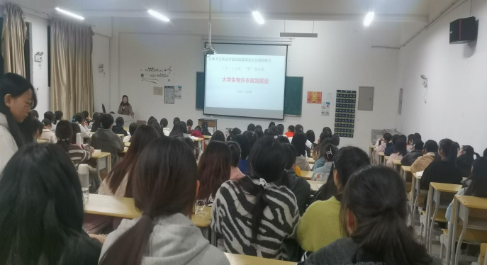 本次讲座第一部分介绍了江西省专升本报名的基本流程、时间节点以及报考院校的接班要求,带领同学们分析了九江学院、赣南医学院、井冈山大学历年的报考公告和参考科目大纲,得到了同学们的积极响应。