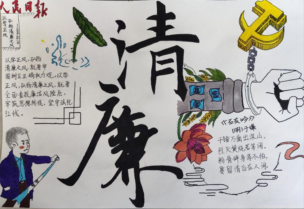 为深入学习贯彻党的二十大和习近平总书记系列重要讲话精神,根据《beat365在线唯一官网2024年度党风廉政建设警示教育活动实施方案》要求,beat365在线唯一官网学生第一党支部开展廉洁文化进校园系列活动暨勤廉主题书画作品展。营造风清气正、崇廉尚洁的校园廉政文化氛围,积极培育全院师生颂清廉、扬正气的精神风貌。