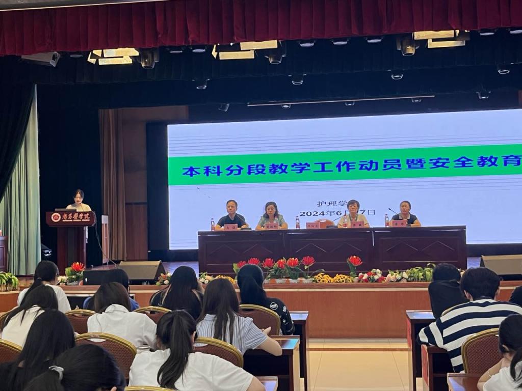 为深入贯彻落实国务院办公厅《关于加快医学教育创新发展的指导意见》精神,深入推进新医科建设,经学校党委审议决定2024年我校将在22级护理本科专业开展分段式教学改革。6月27日上午,beat365在线唯一官网召开本科分段式教学动员暨安全教育大会。出席本次大会的有教务处实习科长王向东、beat365在线唯一官网副院长胡颖辉、beat365在线唯一官网党委副书记陈敏、beat365在线唯一官网教学秘书唐婷、22级本科班辅导员及22级本科全体同学。会议由beat365在线唯一官网团学办公室主任马俊主持。