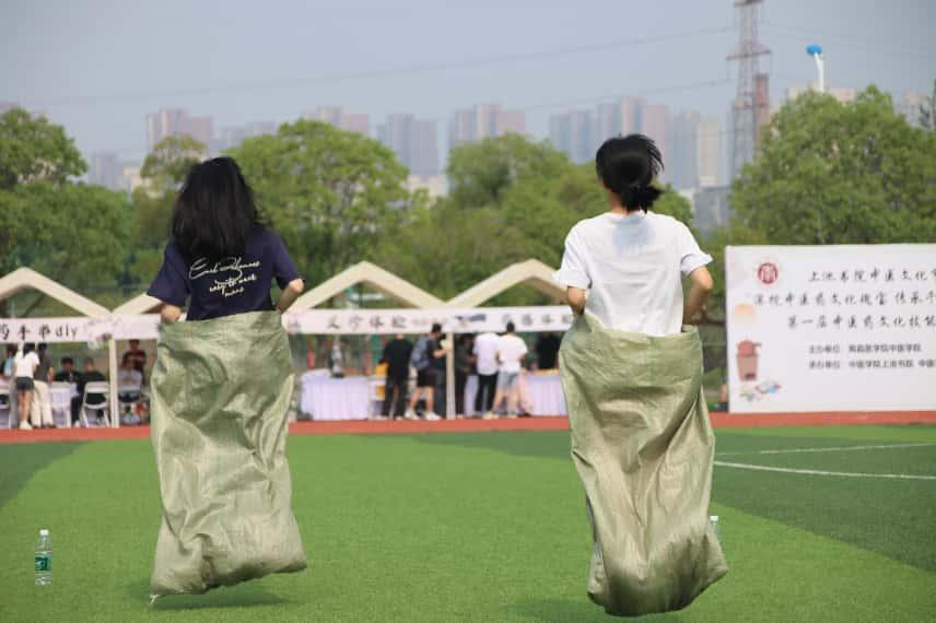 运动会设置10项特色项目,将护理专业特色与体育运动巧妙结合。在“护理接力赛”中,既考验团队协作,又让学生在奔跑中感受护理工作的严谨;“护士帽接球挑战”则独特的道具设计让学生在协作中增强职业认同感。“医疗用品投壶”则让学生用医用棉球投向壶内,以独特有趣的方式让同学们熟悉医疗用品。“健康知识问答”环节,在运动中提升专业知识储备;“穿针引线项目里,参赛者需在30秒内完成针线穿引,考验手部精细操作,与护理工作对精度的要求高度契合。传统趣味项目同样亮点十足。“袋鼠跳”中参赛者套着布袋跳跃前行,滑稽的动作引得现场笑声不断。
