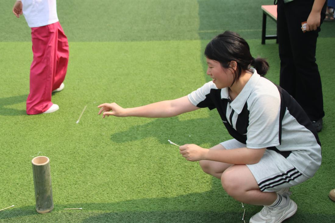 图4:同学们在进行“医疗用品投壶”