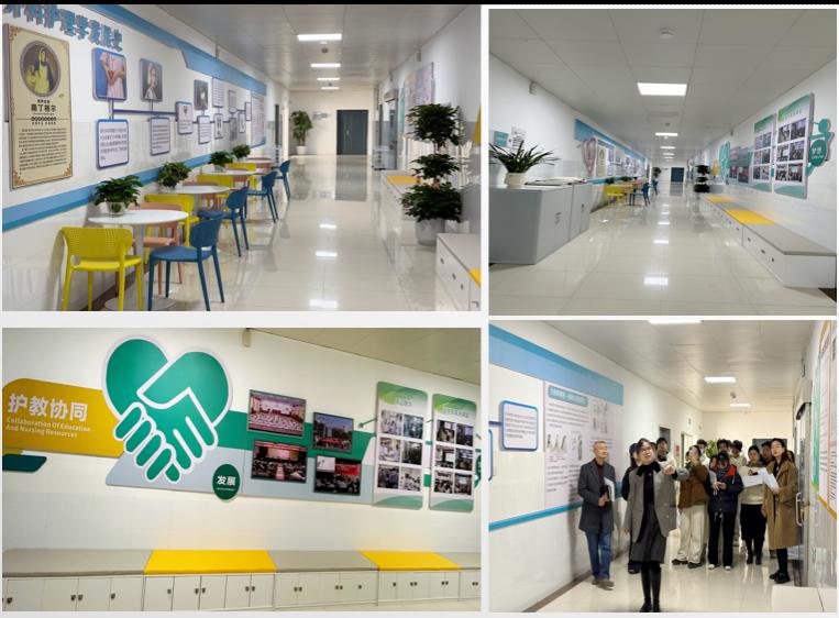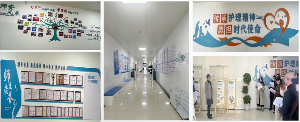 五楼廊道以“以专业,致健康”的设计理念,利用图文并茂的形式,展示现代护理技术、设备及应用案例,展现学科发展历史与传承,提升学生对专业前沿知识的认识。同时紧跟护教协同,创新发展的主题,加强临床实践与课堂教学的融合,展现护理学科发展新方向。