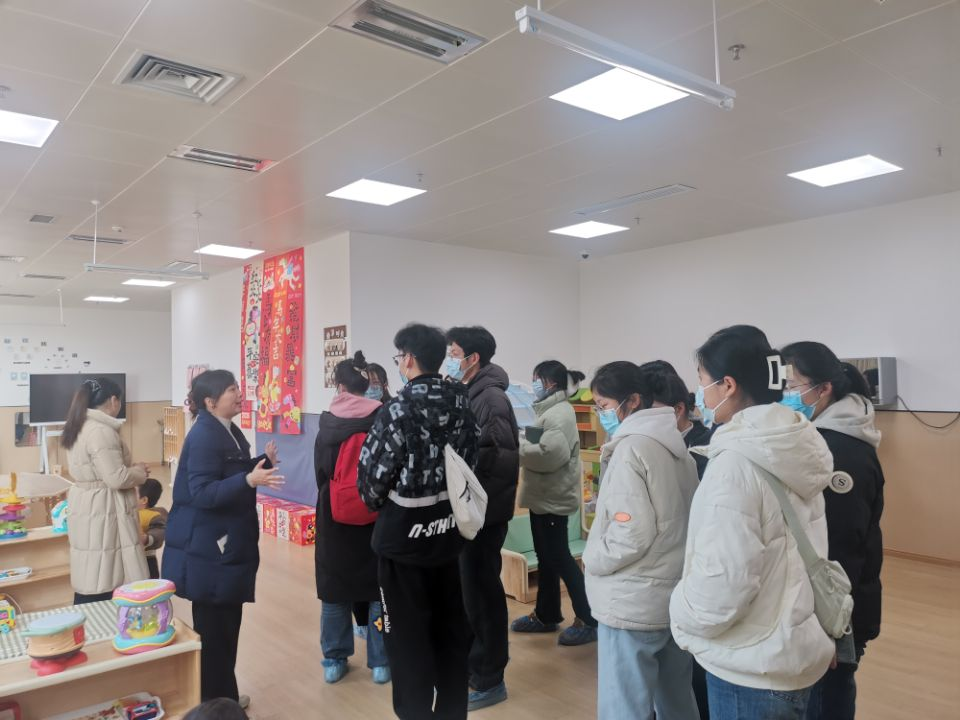 在实践过程中,学生们深度体验了 “医育结合” 的特色照护模式,拓宽了专业视野,亲眼见证专业医护技能与早期教育如何相融共生。托育中心的环境设计处处彰显巧思:家具全圆角处理、插座藏于高处,1 岁班玩具侧重感官刺激,2 岁班增设拼图和角色扮演道具,从细节处为孩子们的安全与成长保驾护航。同时,学生们还学习了幼儿常见健康问题的处理流程,当遇到孩子轻微哭闹、腹胀等情况时,与老师进行交流,深刻体会到托育护理既需要扎实的医学知识,更需要敏锐的观察力与共情能力。