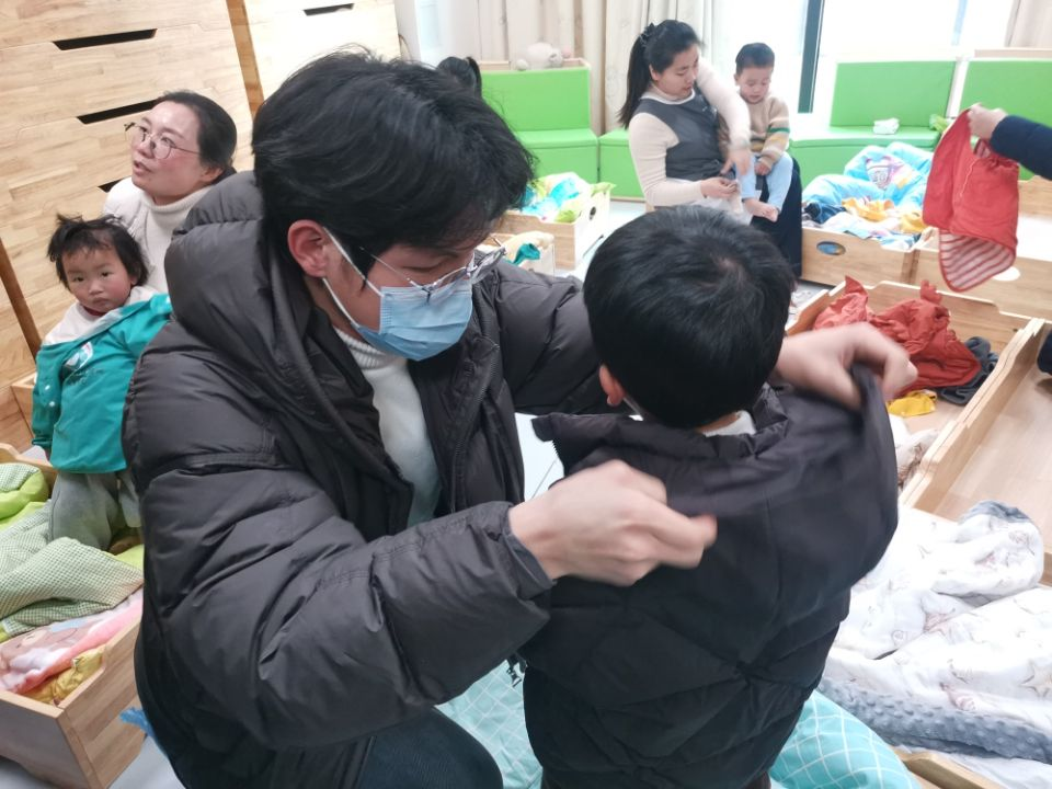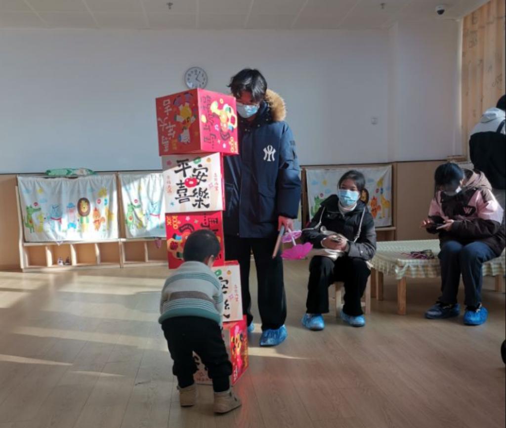 紧凑的实践日程中,学生们用温柔与耐心搭建起与孩子们沟通的桥梁:陪伴孩子们开展课前律动,午睡后轻手轻脚帮忙穿衣服、系鞋带,喂饭时轻声夸赞、耐心倾听咿呀话语,游戏时陪着搭积木、讲故事,在细碎的互动中逐渐融化孩子们的陌生感。有原本怯生的宝宝主动拥抱陪伴者,有孩子把玩具分享给新认识的 “大朋友”,这些温暖瞬间让学生们深切感受到陪伴的意义。